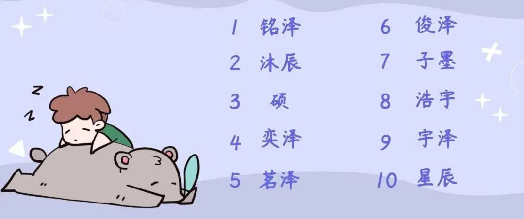 紫云新生男宝名字常用字TOP10(数据来自网络仅供参考)